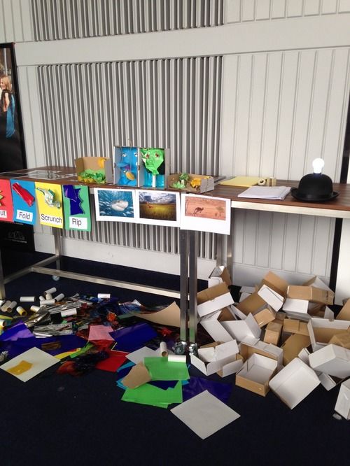 So Ive been a busy girl with 400 friends in the Dunstan Playhouse foyer! This was a workshop run recently as part of the Something on Saturday program. This workshop related to the show by Circa in the Festival Center program. I designed the workshop to encourage families to work together to create animal habitats in small boxes out of colored paper.