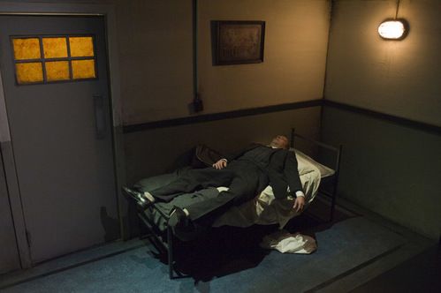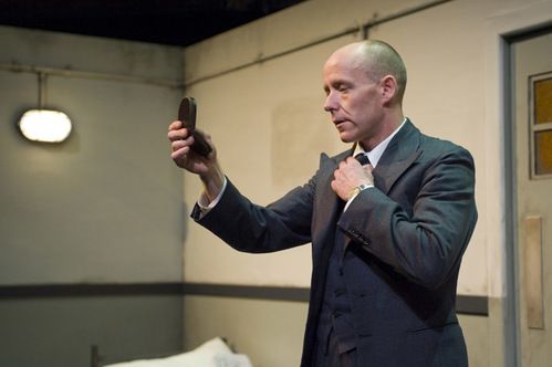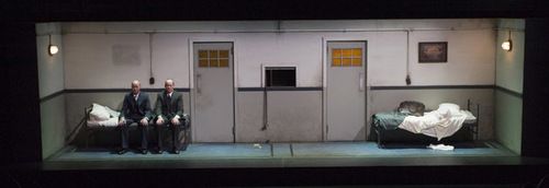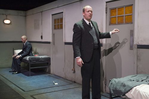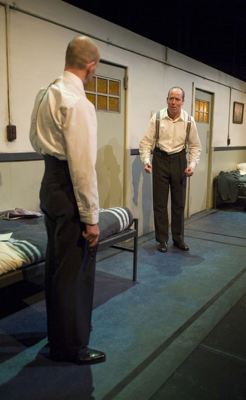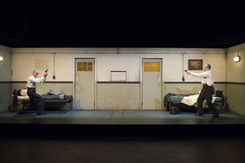 following the geometric symmetry of Morag Cook's suitably shabby horizontal box set - two doors, two beds, the dumb waiter like a shrine in the centre - director Geordie Brookman has cast identical twins David and Brendan Rock to mirror the ambiguity of power and purpose in the text.
